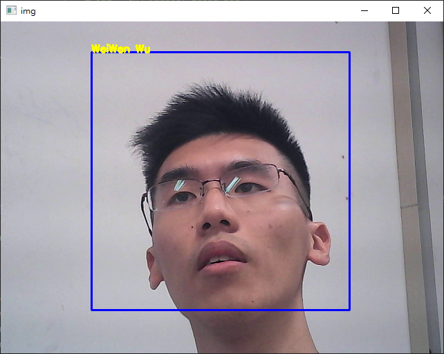 (修改object_detection.py並調整最後兩個數值參數。這樣你自己的臉就可以被更好地檢測出來,當你的臉被檢測到時,你的名字就會被顯示出來。)